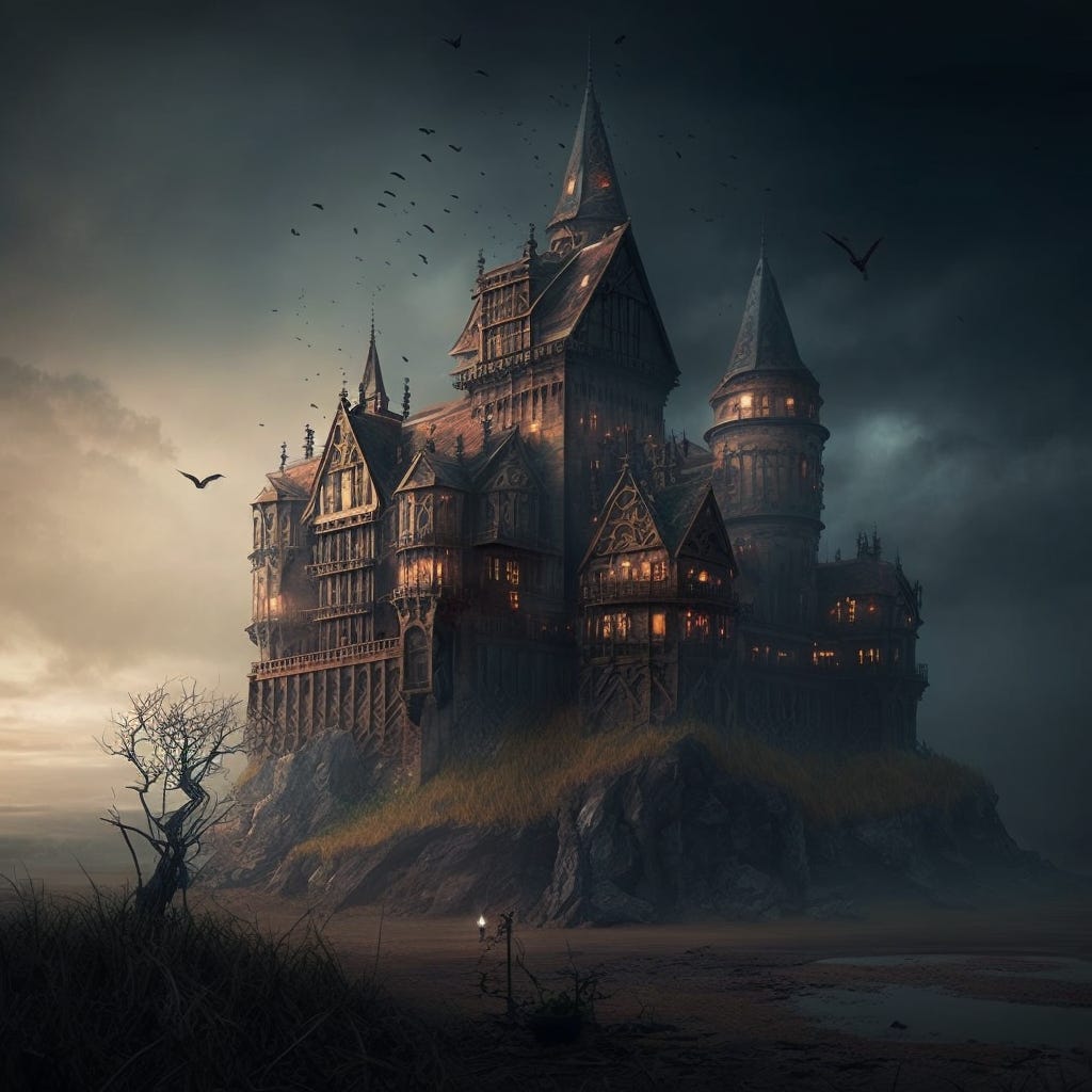 A swirling cloud of vapors, serpents, skulls, and apparitions enveloped the castle. The mist changed from white to black to blood red, circling the castle faster and faster.